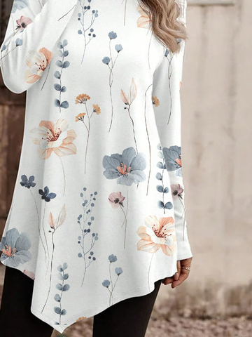 • Casual Floral Half Turtleneck Long Sleeve T-shirt