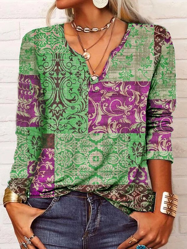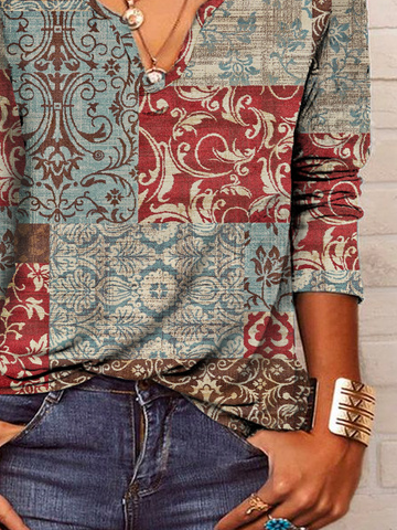 Casual Long Sleeve V neck Top