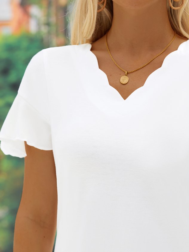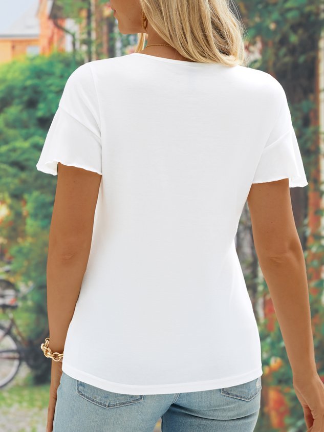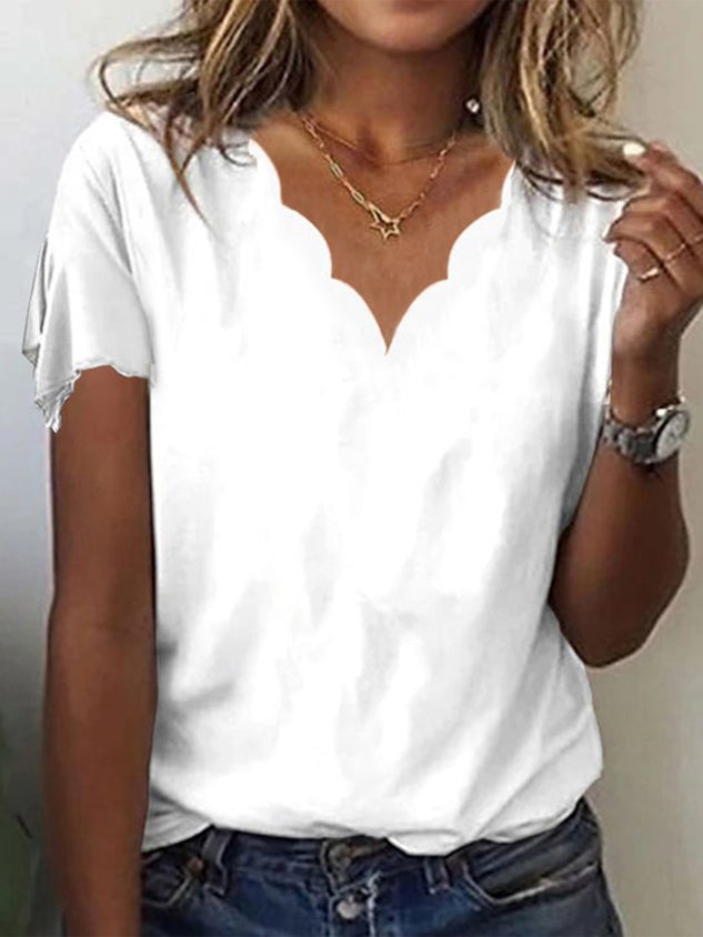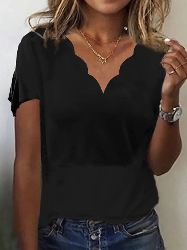 Casual Plain V Neck Shor Sleeve T-Shirt