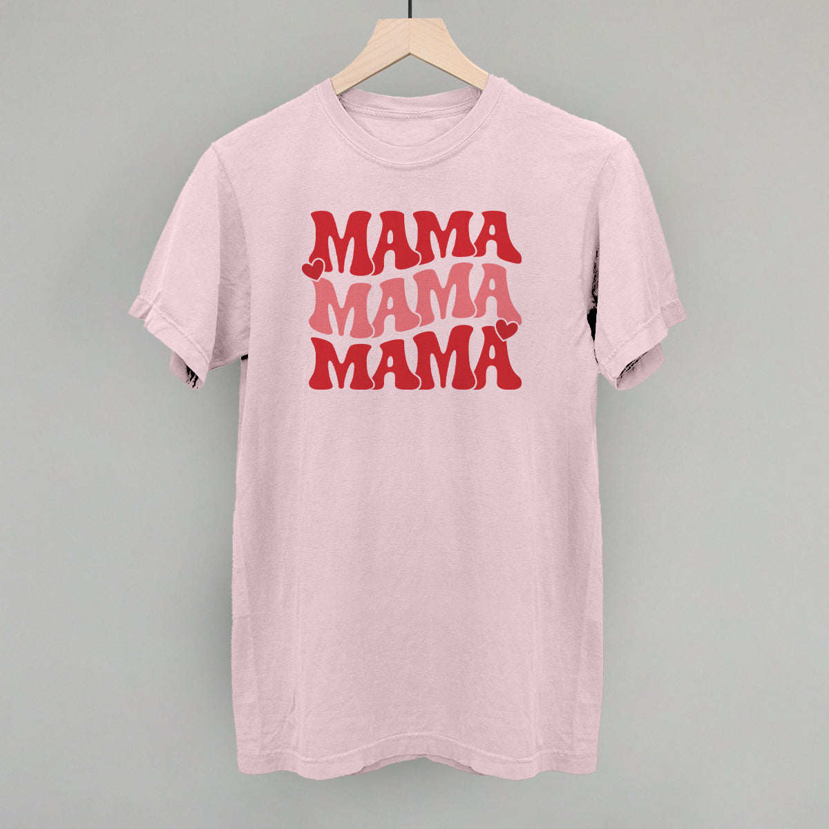 Model is wearing size large (for oversized fit) in soft pink tee.