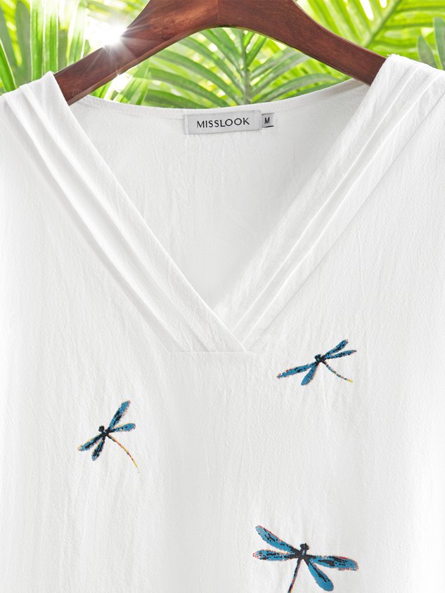 • Casual Printed Short Sleeve V Neck T-Shirt Top