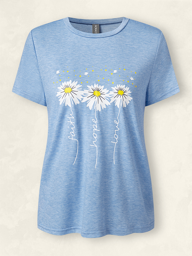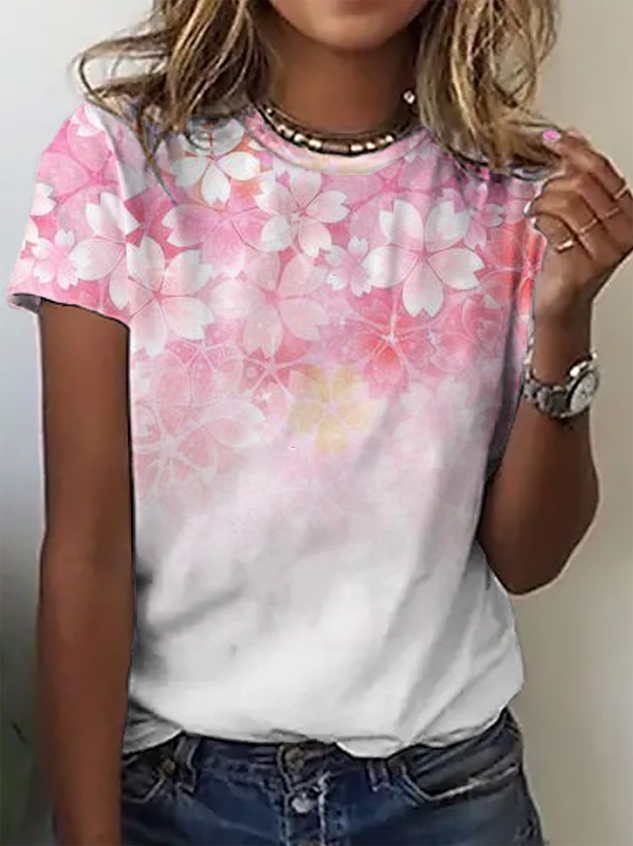 Floral Casual Crew Neck Short Sleeve T-Shirt