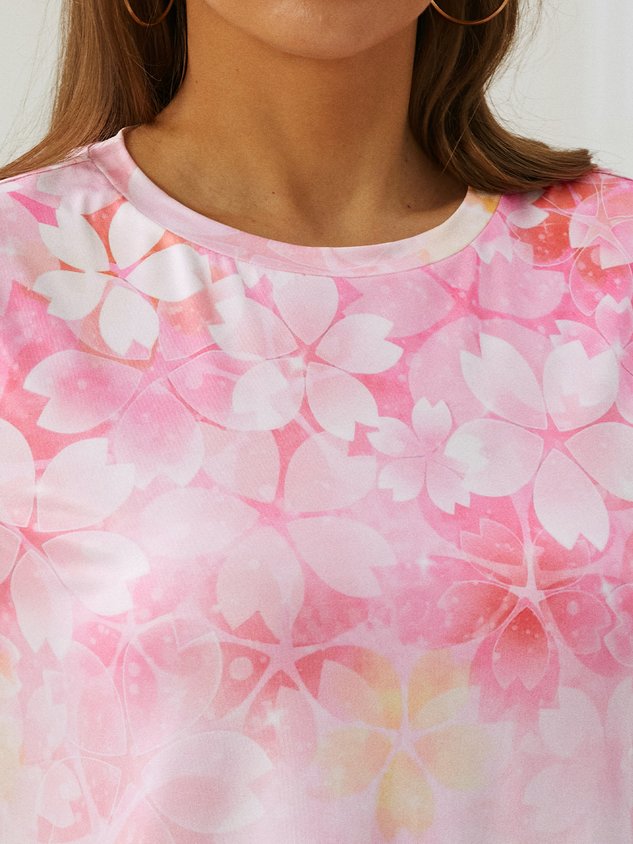 Floral Jersey Crew Neck Loose Casual T-shirt