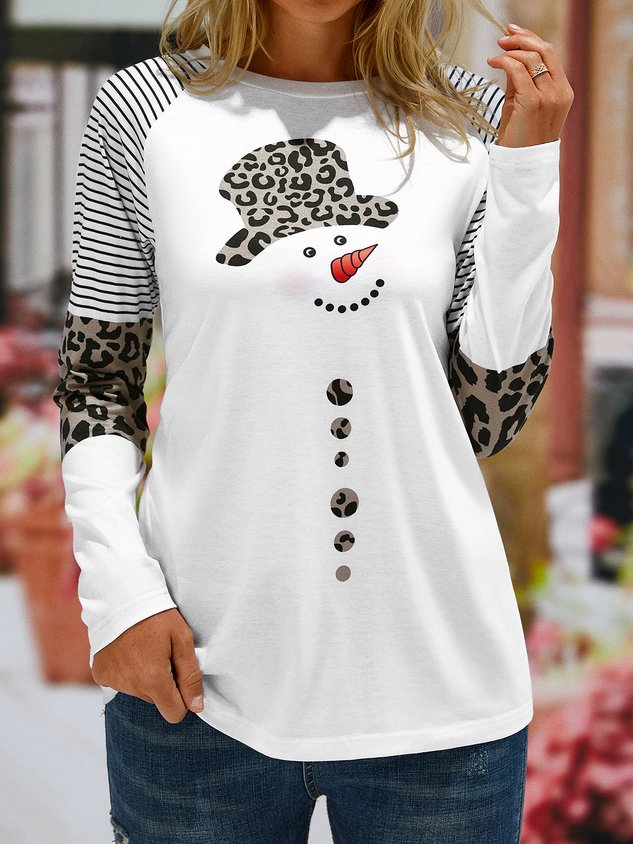 Crew Neck Striped Print Long Sleeve Casual T-Shirt