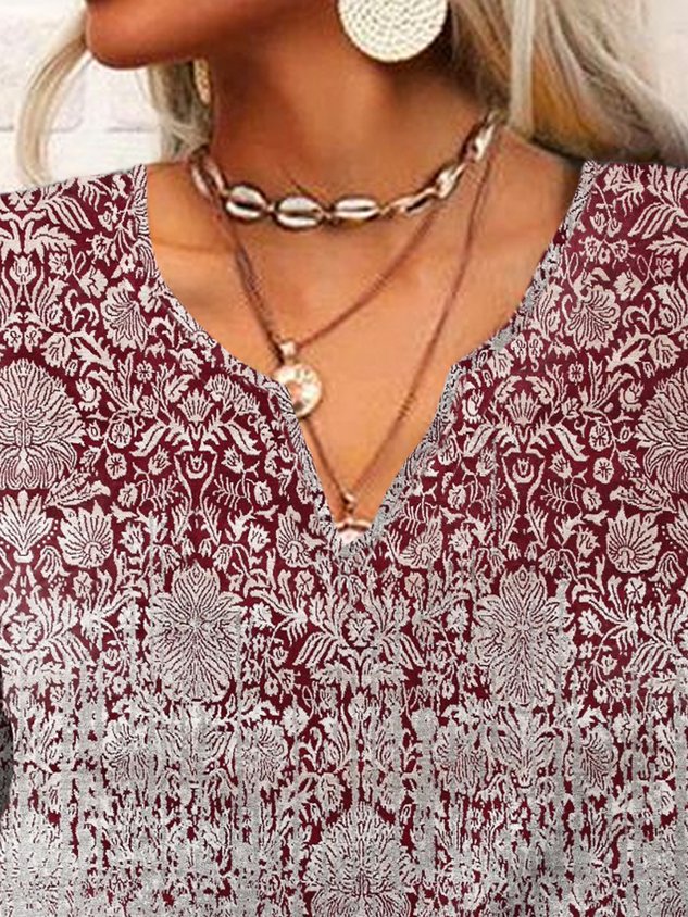 Ethnic Long Sleeve Notched Casual Tunic Blouse