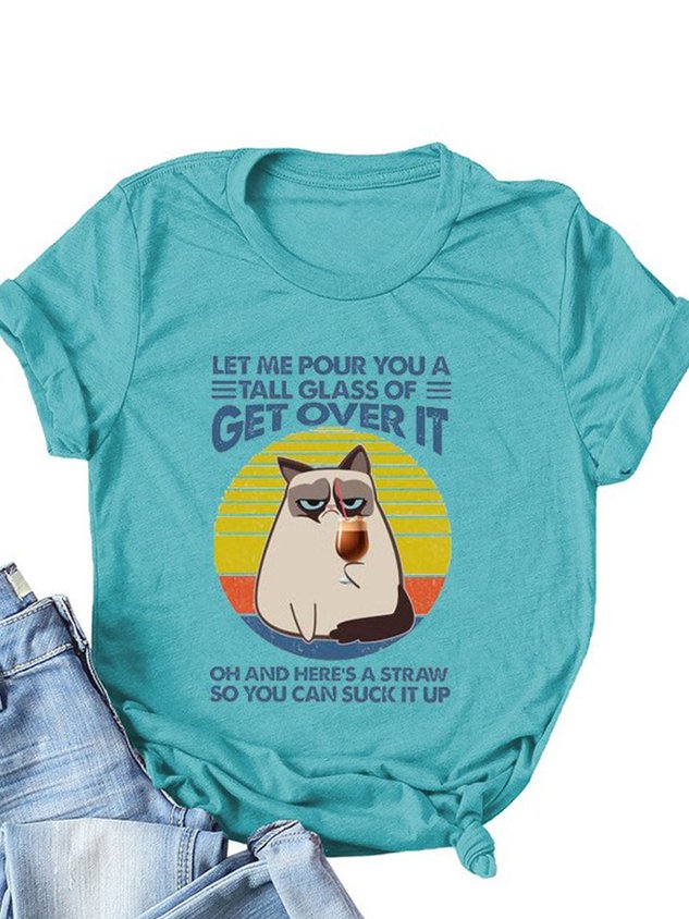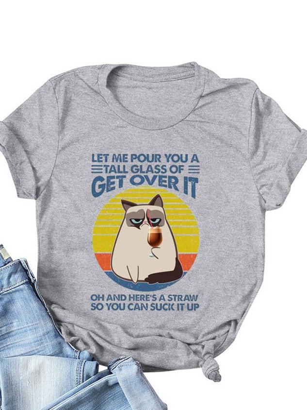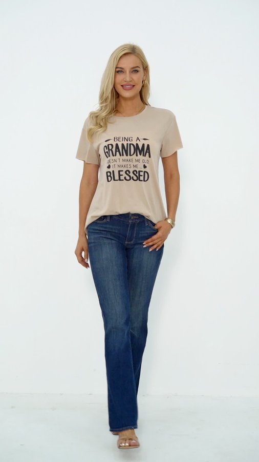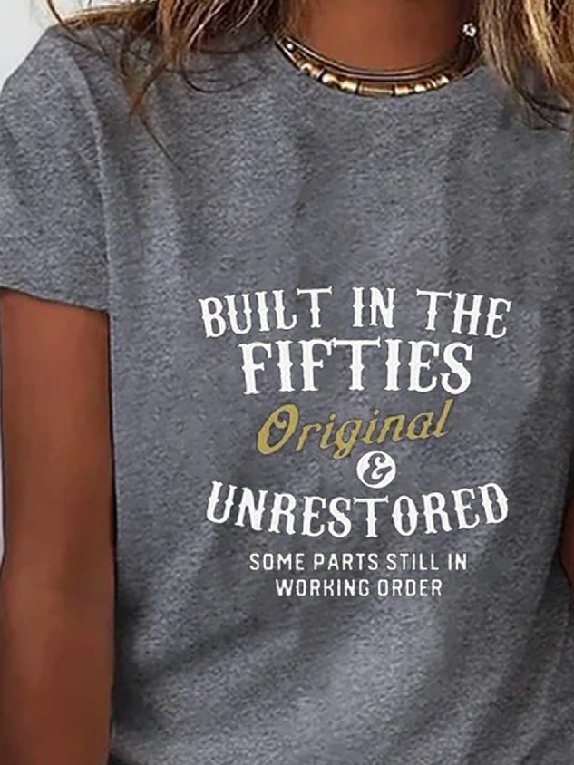 Casual Loose Text Letters Crew Neck Short Sleeve T-Shirt