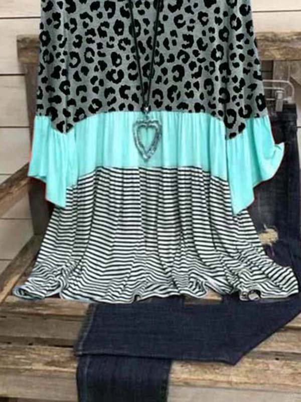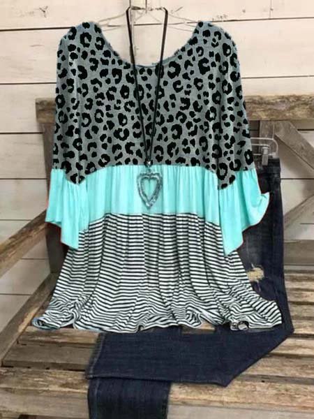 Casual Cotton-Blend 3/4 Sleeve Leopard-Print T-shirt
