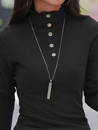 Casual Plain Half Turtleneck Buttoned T-Shirt