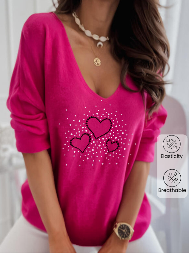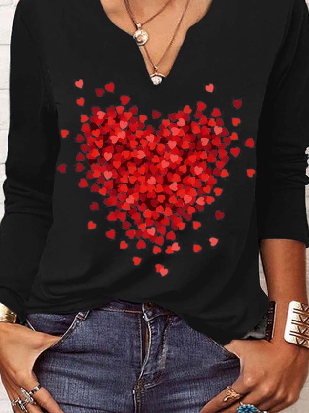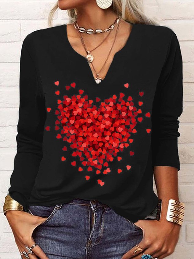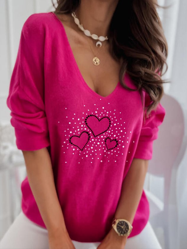 Casual Heart/Cordate V Neck Long Sleeve T-shirt