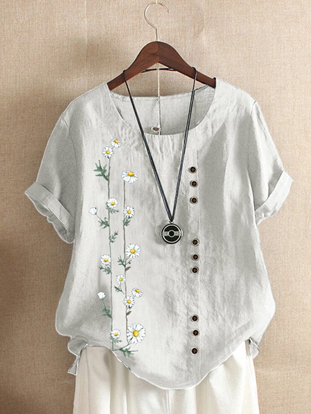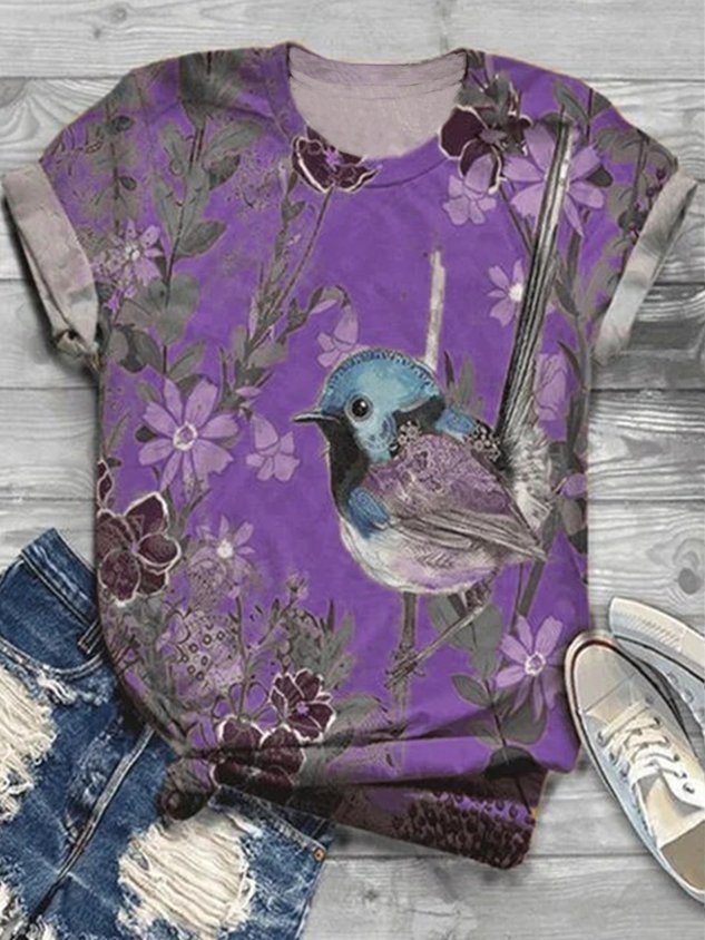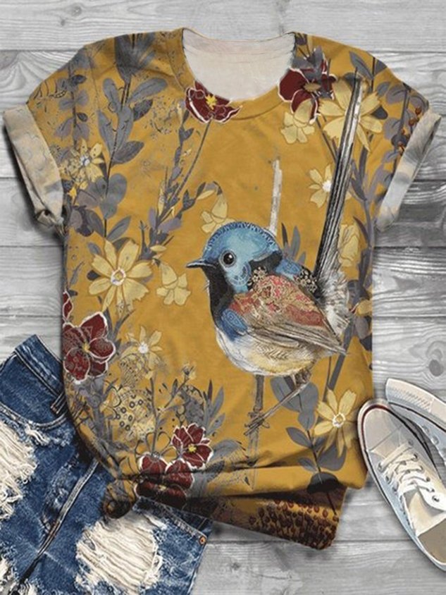 Casual Floral Print Crew Neck Short Sleeve T-shirt