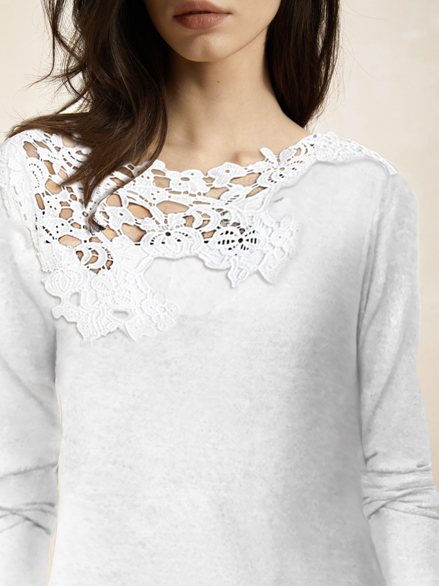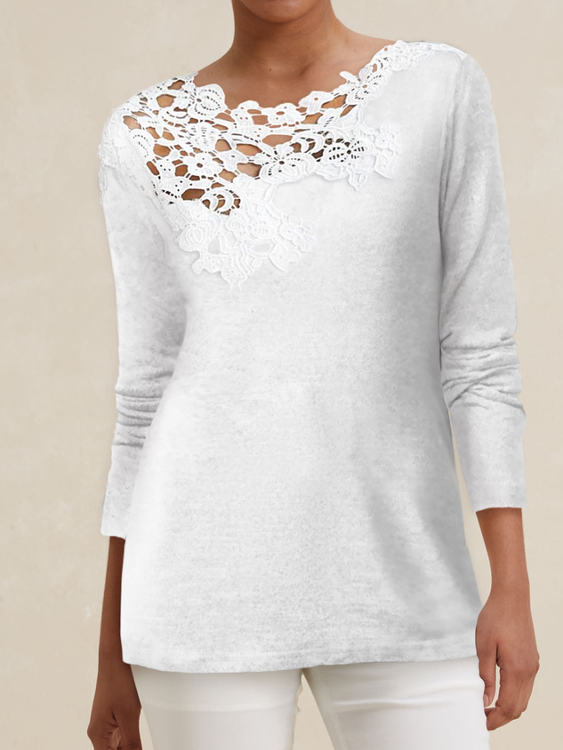 Casual Long sleeve V Neck Leopard Lace T-Shirt