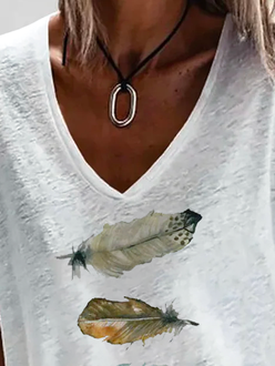 Casual Printed Short Sleeve V Neck T-Shirt Top