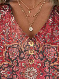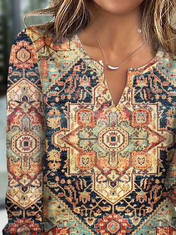 Casual Notched Neck Ethnic Printed T-Shirt