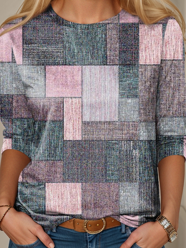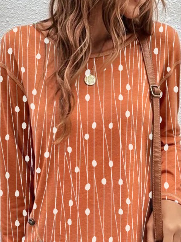 Casual Crew Neck Geometric Long Sleeve Loose Tunic Blouse