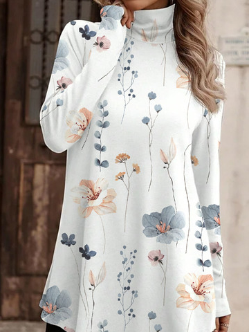Casual Floral Half Turtleneck Long Sleeve T-shirt