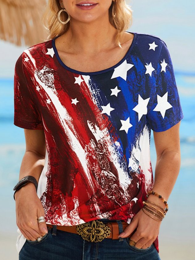 Crew Neck Flag Casual Short Sleeve T-Shirt