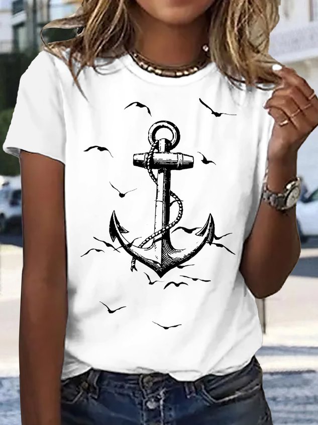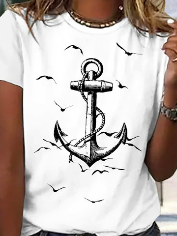 Casual Crew Neck Jersey Printed T-Shirt