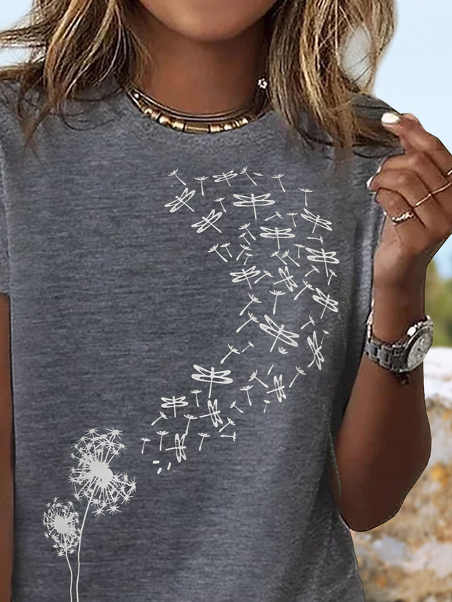 Casual Dandelion Printed Crew Neck Jersey T-Shirt
